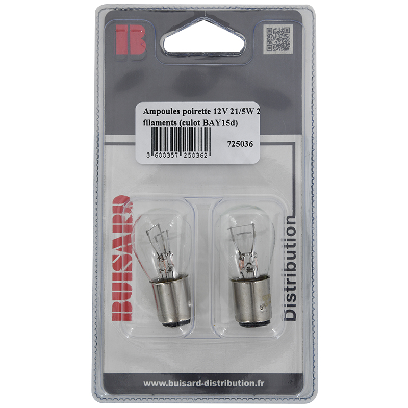 Ampoule poirette 12V 21/5W 2 filaments Hella en boite / Prix pièce par 10 RÉF : 14657 A partir de 1,61€ ht Détail
