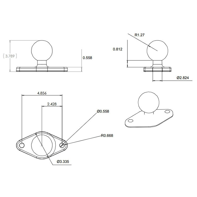 BASE DE FIXATION LOSANGE AVEC 2 PERCAGES AVEC ROTULE DIAMETRE 1" (2.54CM)
