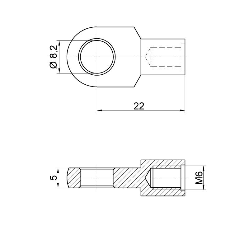 Chape à œil acier E22 D8,2 M6 en vrac / à l'unité