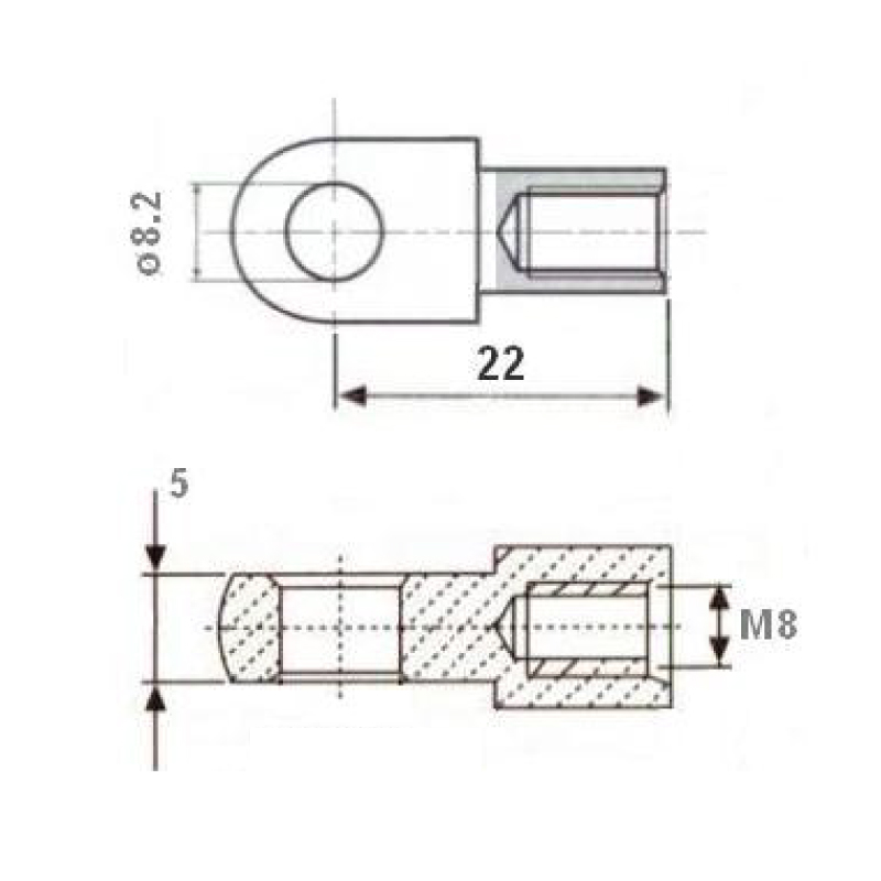 Chape à œil acier E22 D8,2 M8 en vrac / à l'unité
