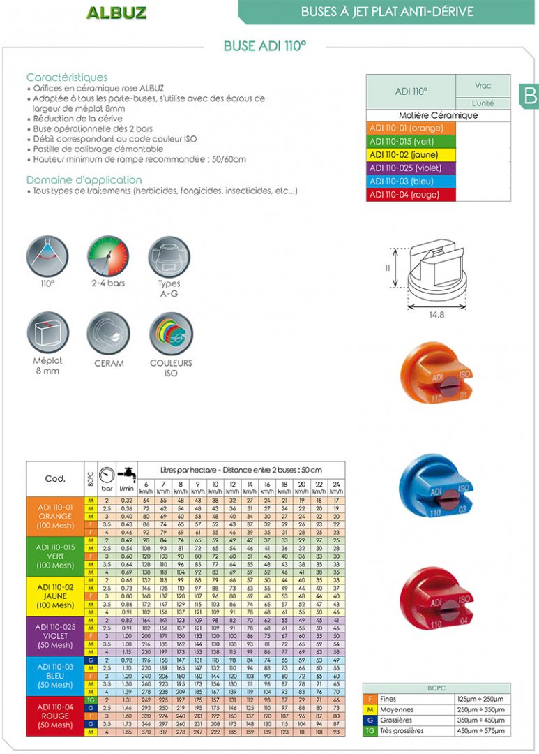BUSE ANTI DERIVE - JET PLAT 110° - MEPLAT 8MM - PRESSION 2-4 BAR - ISO