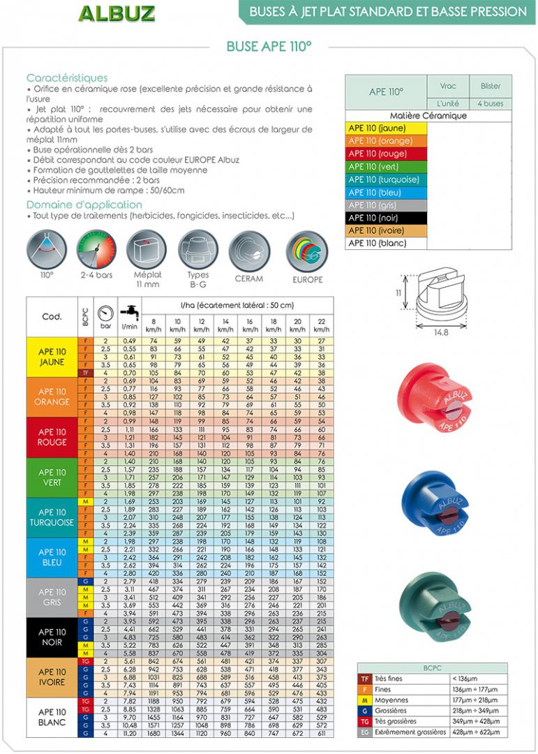 BUSE STANDARD - JET PLAT 110° - MEPLAT 11MM - PRESSION 2-4BAR