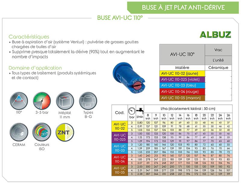 La buse AVI-UC 110° est homologué à 90% antidérive.