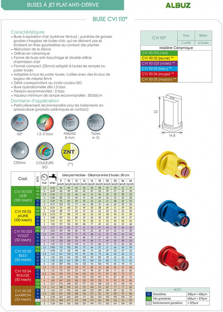 BUSE ANTI-DERIVE A INJECTION D'AIR - JET PLAT 110° - MEPLAT 8MM - PRESSION 1,5-5BAR - ISO - HOMOLOGUE ZNT