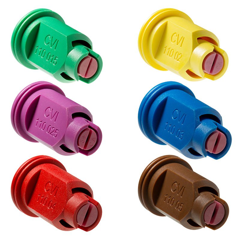 Buse à injection d'air (système Venturi) : basse pression, pulvérise de grosses gouttelettes chargées de bulles d'air qui ne dérivent pas et éclatent en fines gouttelettes au contact des plantes.