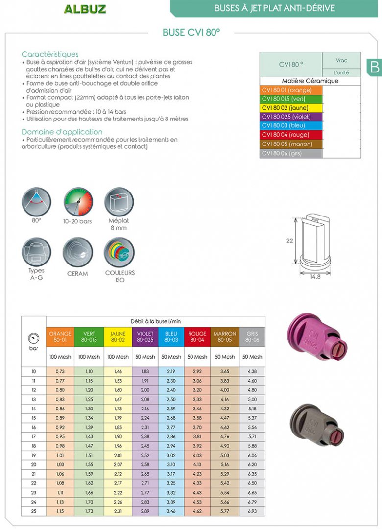 BUSE ANTI-DERIVE A INJECTION D'AIR - JET PLAT 80° - MEPLAT 8MM - PRESSION 10-20BAR - ISO