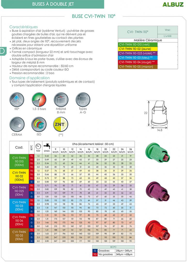 BUSE ANTI-DERIVE A INJECTION D'AIR - JET PLAT DEUX ANGLES 110° - MEPLAT 8MM - PRESSION 1,5-5BAR -ISO - HOMOLOGUE ZNT