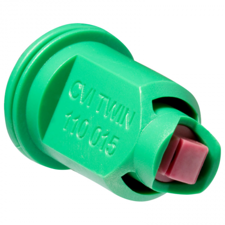 Buse double fente à injection d'air (système Venturi) basse pression, pulvérise de grosses gouttes chargées de bulles d'air, qui ne dérive pas et éclatent en fines gouttelettes au contact des plantes.