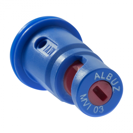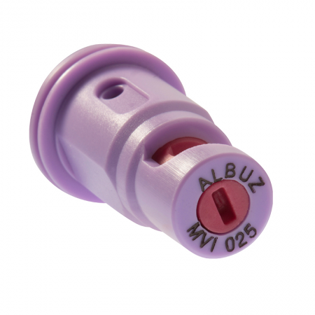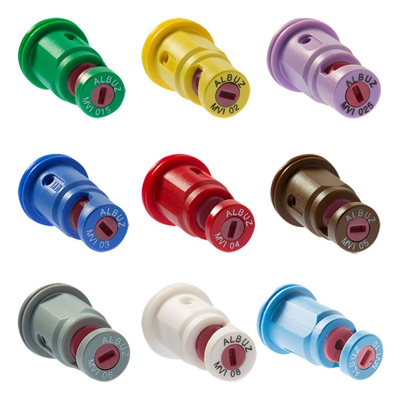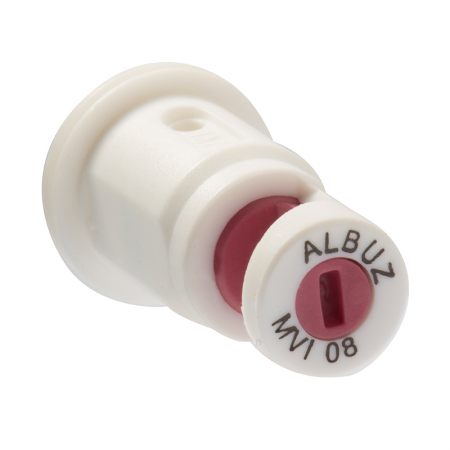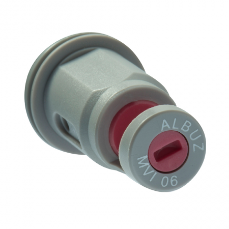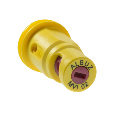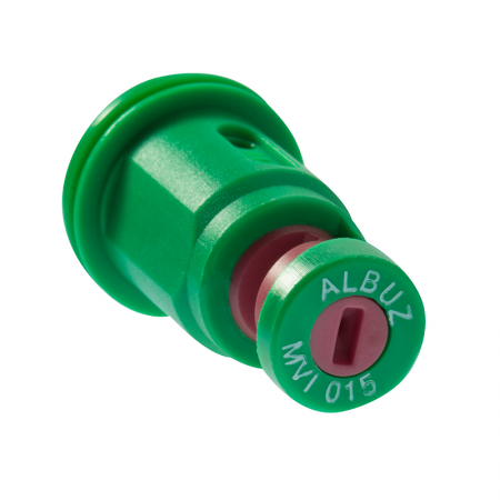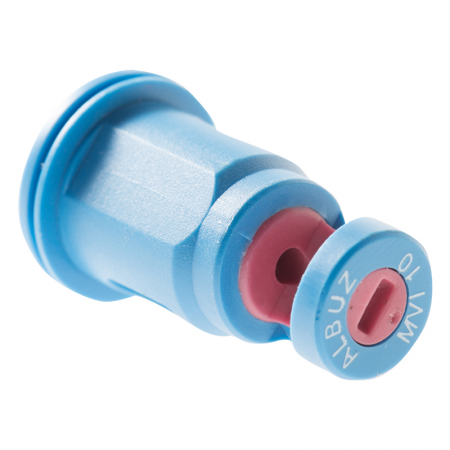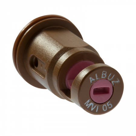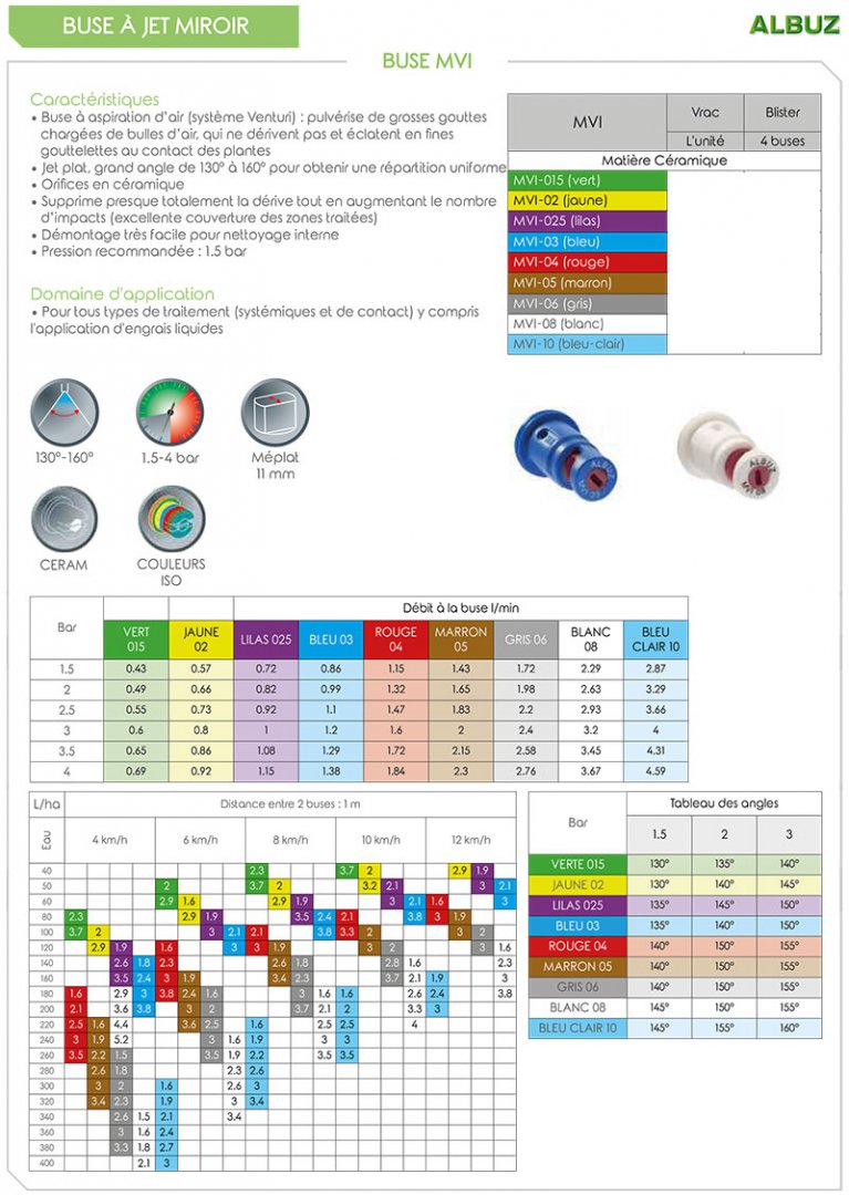 Buse à aspiration d'air : pulvérise de grosses gouttes chargées de bulles d'air, qui ne dérivent pas et éclatent en fines goutelettes au contact des plantes.