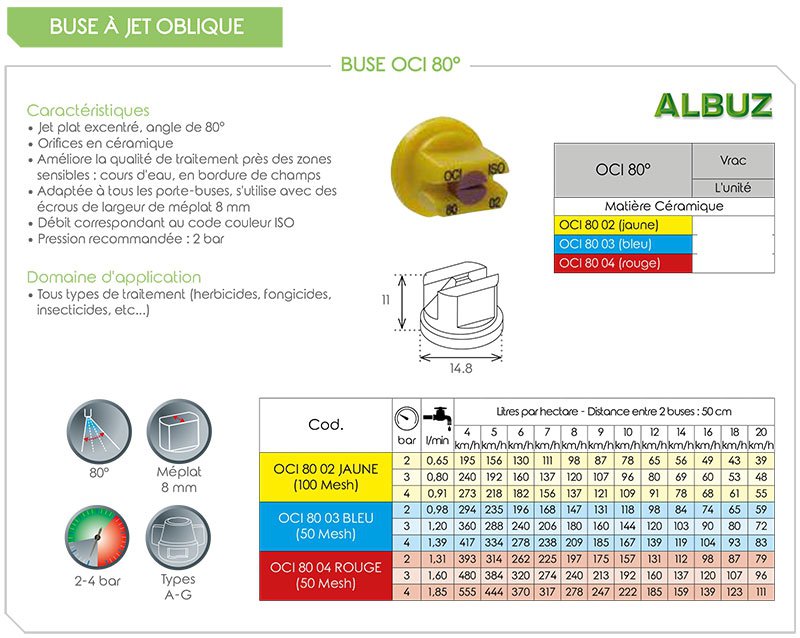 BUSE A JET PLAT EXCENTRE 80° - MEPLAT 8MM - PRESSION 2-4 BAR - ISO