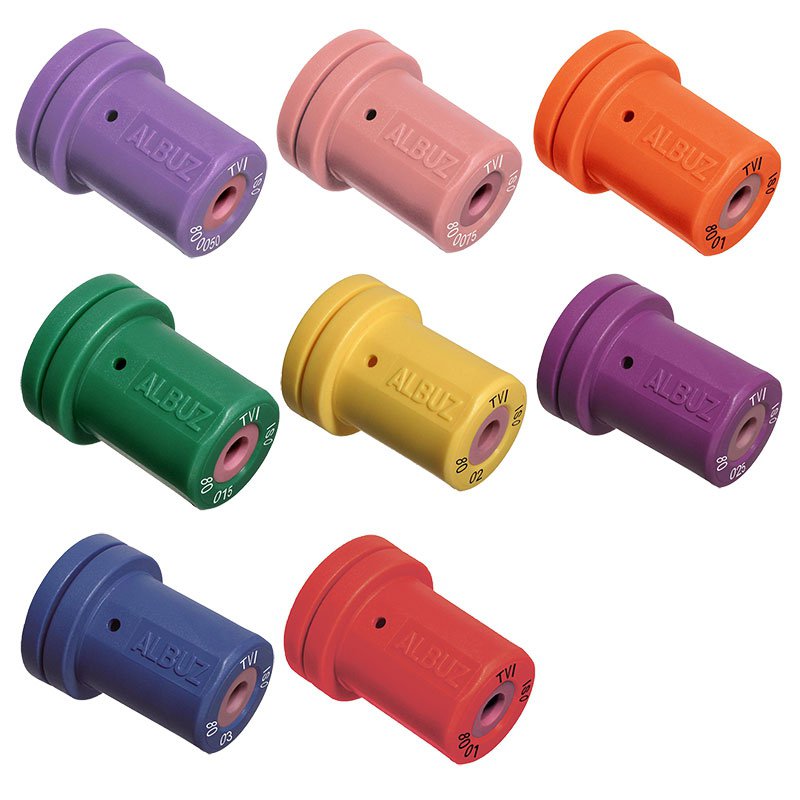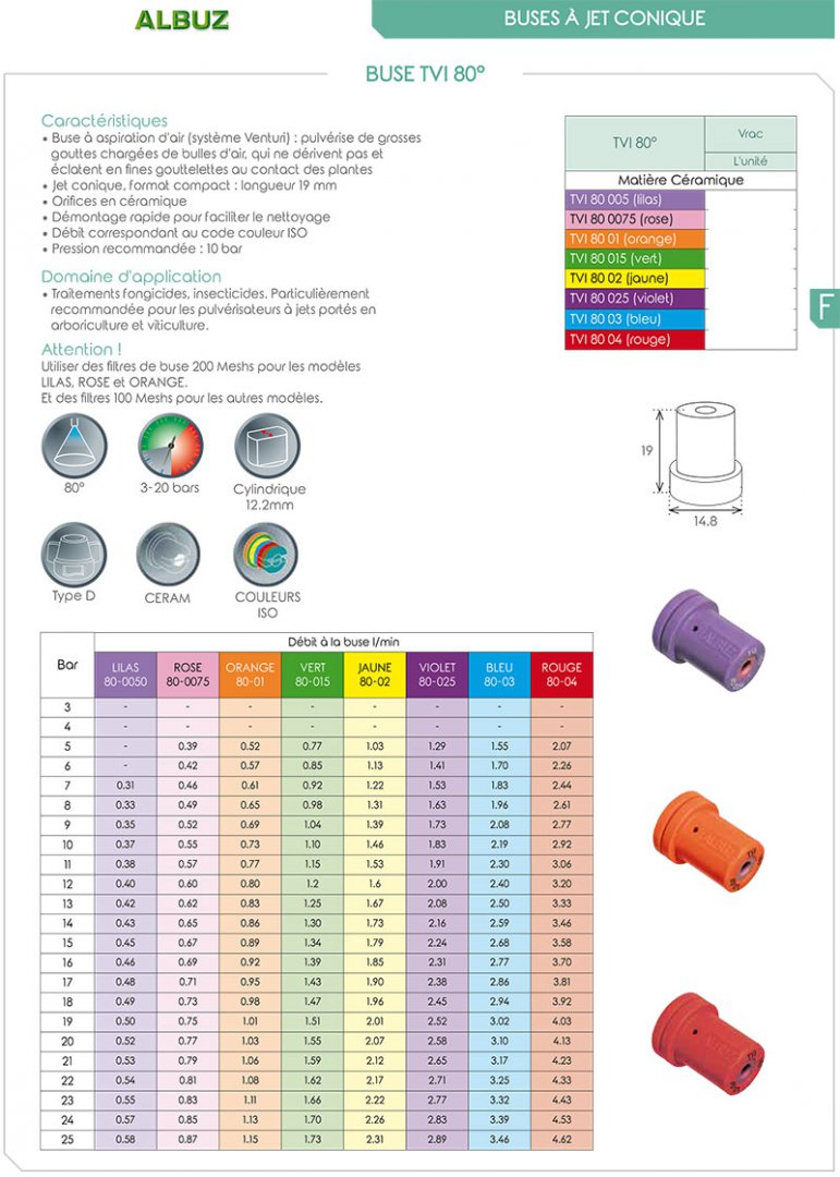 BUSE ANTI-DERIVE A INJECTION D'AIR - JET CONIQUE CREUX 80° - PRESSION 3-20BAR - COULEURS ISO