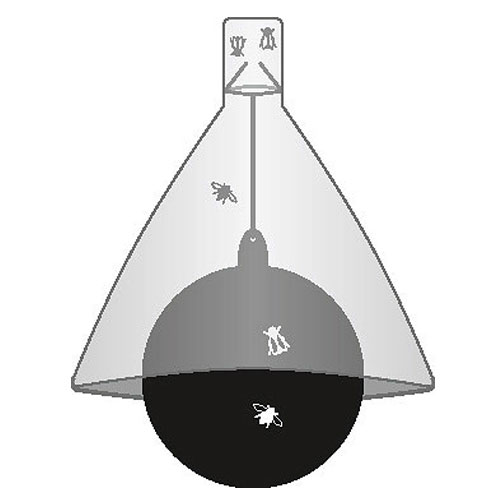 • Comment fonctionne le piège? la balle se réchauffe et simule ainsi pour les taons un corps-cible duquel aspirer du sang. Après un essai infructueux de prélèvement de sang, l'insecte s'élève de sa cible et reconnaît le collecteur comme la seule voie de sortie supposée.