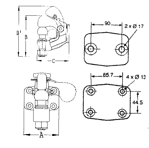 - Prévu pour un attelage avec un anneau de type BNA (dimensions int. 42 x ext. 68 & 76 mm)