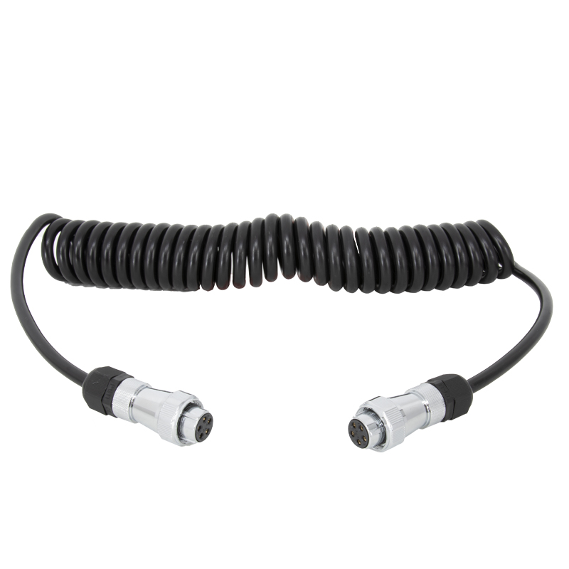 CABLE SPIRALE 5 PIN 4M POUR CONNECTER L'ECRAN INSTALLE DANS UN TRACTEUR A LA CAMERA MONTEE SUR UN MATERIEL