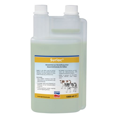• domaines d'application : le lait Surlac stimule les glandes digestives et l'appétit. L'acide Surlac supprime les excitateurs de la diarrhée, en particulier les colibacilles. C'est pourquoi le lait Surlac est employé pour la prévention et le traitement de la diarrhée chez les veaux.