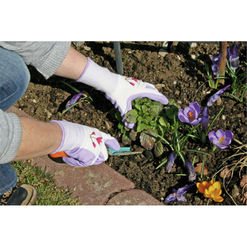 • couleurs agréables et fleurs dessinées sur le dos du gant
