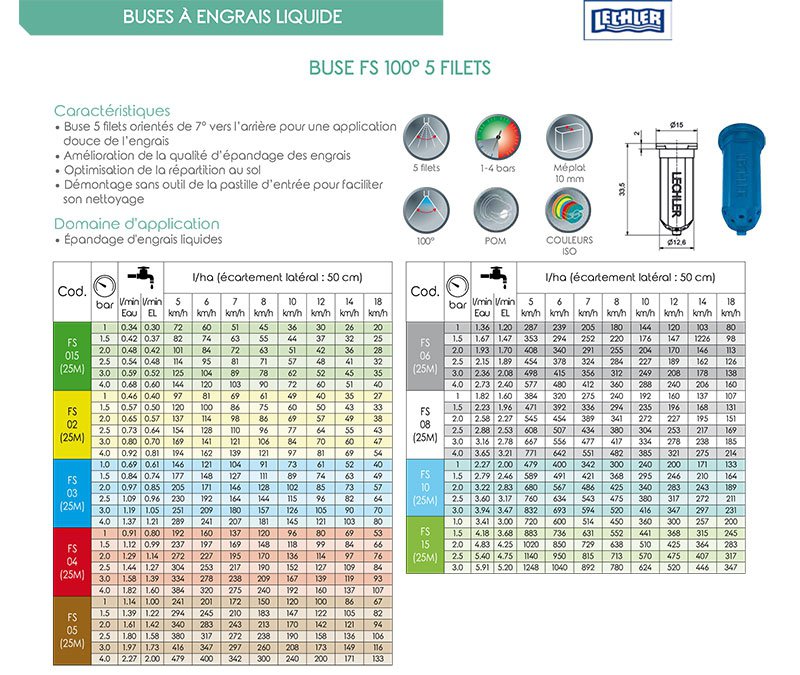 BUSE A ENGRAIS LIQUIDE FS 5 FILETS 100° COULEUR ISO