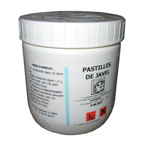 Retour Boite 500g pastilles javel Description: - Comprimés doses effervescents 1.5 g de chlore actif. - 150 comprimés. - Pot de 500 gr. Réf. Photo Désignation Prix Qté Réf. 12252 Photo Boite 500g pastilles javel Boite 500g pastilles javel Prix 11,55€ ht Qté Ajouter au panier