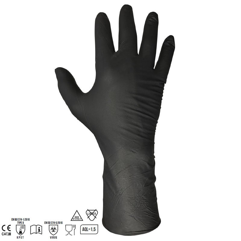 - Gants jetables en nitrile noir sans poudre.