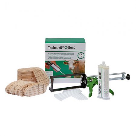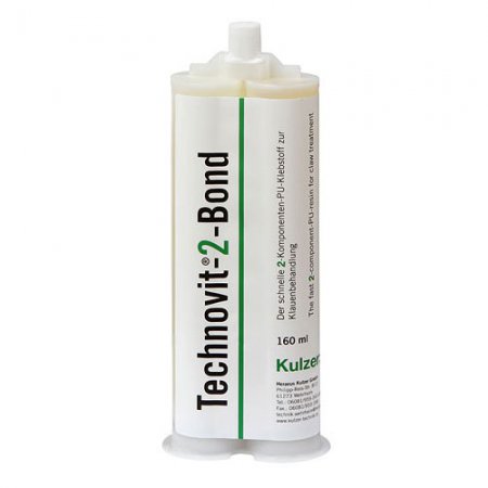 - Technovit-2-Bond est une colle à deux composants à séchage rapide pour le soin des onglons. Une petite quantité de colle permet de fixer en quelques secondes un bloc de bois ou de caoutchouc sur les onglons sains afin de soulager l'onglon malade après traitement et d'accélérer la guérison.