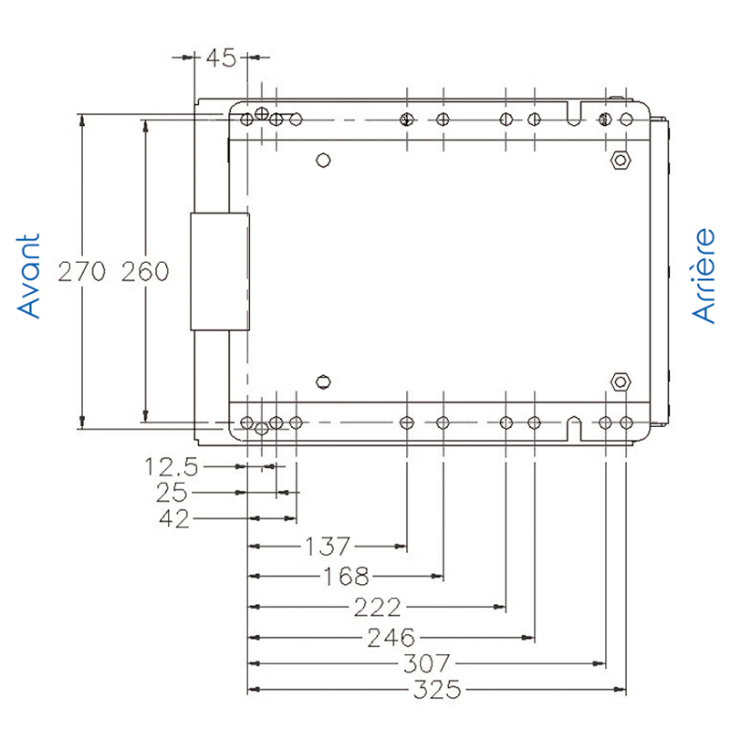 Réglage longitudinal des glissières 160 mm
