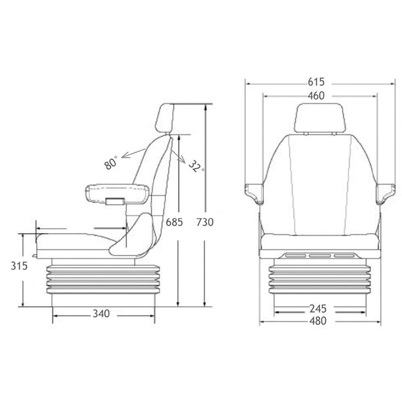 Dossier inclinable de 80° vers l'avant et 32° vers l'arrière