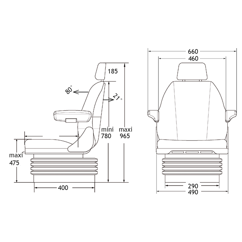 Dossier inclinable 80°vers l'avant et 21° vers l'arrière