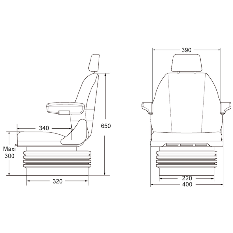 Hauteur dessus assise/embase 273 mm - largeur assise 400 mm Homologué catégorie A classe I et II