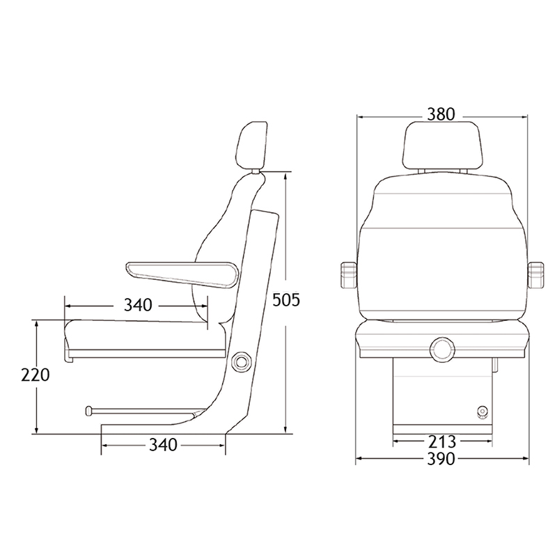 Hauteur dessus assise/embase 225mm - largeur assise 395mm
